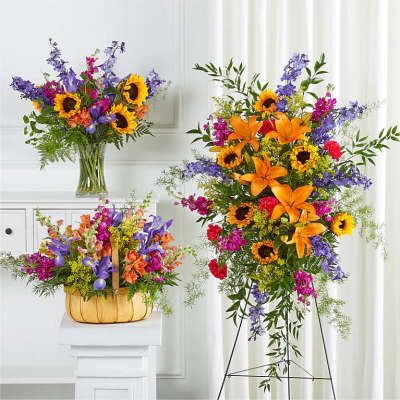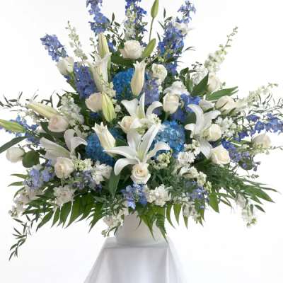 Price: $172.00 Heartfelt Tribute Blue & White Floor Basket Arrangement Product Tags: Next-day Delivery